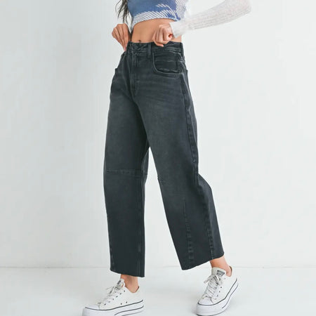 Just Black Denim-Hr Tapered Barrel Jean / washed black