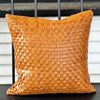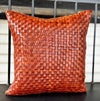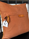 Handmade beaded leather pillow with organic cotton backing. Covers are removable. Filled with down pillow inserts. Dimensions 20x20.