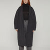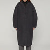 A relaxed, sculptural silhouette that envelops the body with quiet elegance. This maxi-length coat is crafted from a soft wool blend with a cocoon-sleeve design, creating gentle volume and modern proportions. The lightly quilted lining adds warmth and structure while maintaining a fluid drape. Its minimal details — a notched collar, hidden button closure, and subtle seam lines — reflect Amente’s understated approach to winter outerwear. Details Wool-blend outer with quilted lining Oversized cocoon sleeve silhouette Notched collar and button closure Side seam pockets