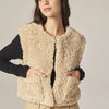 Two looks in one. This short vest is crafted from a warm wool blend with a soft faux fur reverse, offering versatility and texture in a single piece. Designed in a clean, collarless silhouette, it layers effortlessly over knits or under coats. Switch sides to suit your mood or styling needs.