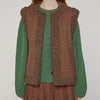 A versatile layering piece for the season. This vest is crafted from a structured cotton lining, allowing for versatile styling options on both sides. It features a front toggle button closure inspired by utilitarian outerwear, with clean edges and minimal detailing to emphasize the reversible construction. The boxy fit allows for easy layering over knitwear or under coats. Reversible design Toggle button fastening at front Sleeveless silhouette with straight hem Relaxed, boxy fit